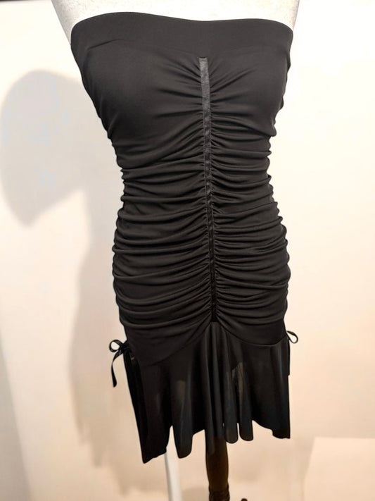 ‘Ruch & Ribbon’ Black Bandeau short dress