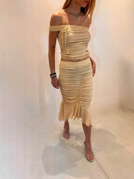 ‘Ruch & Ribbon’ Butter yellow midi skirt