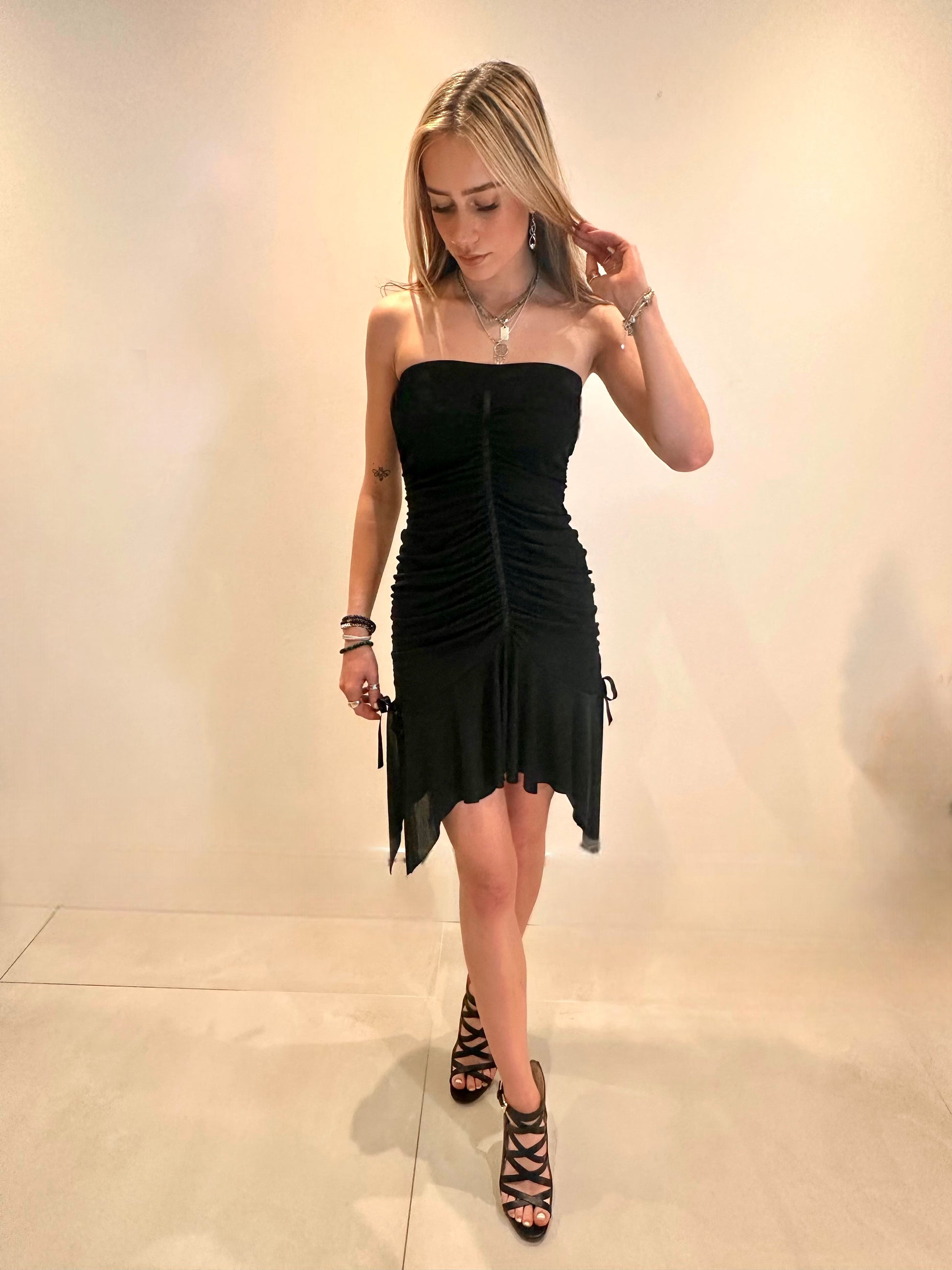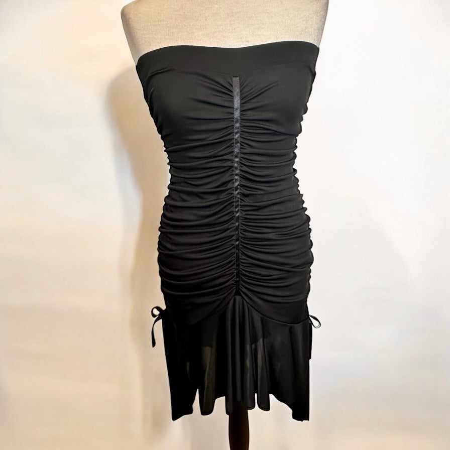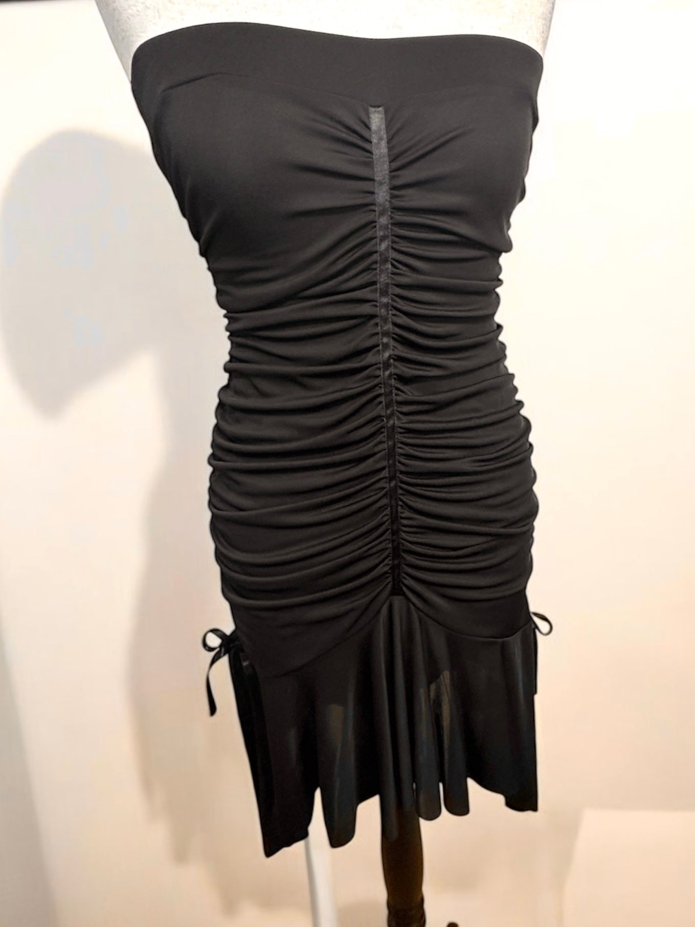 ‘Ruch & Ribbon’ Black Bandeau short dress