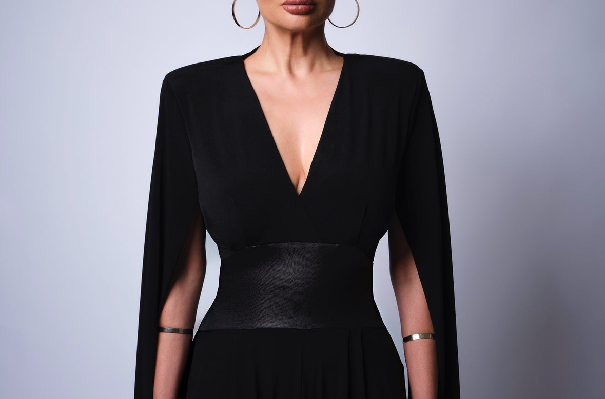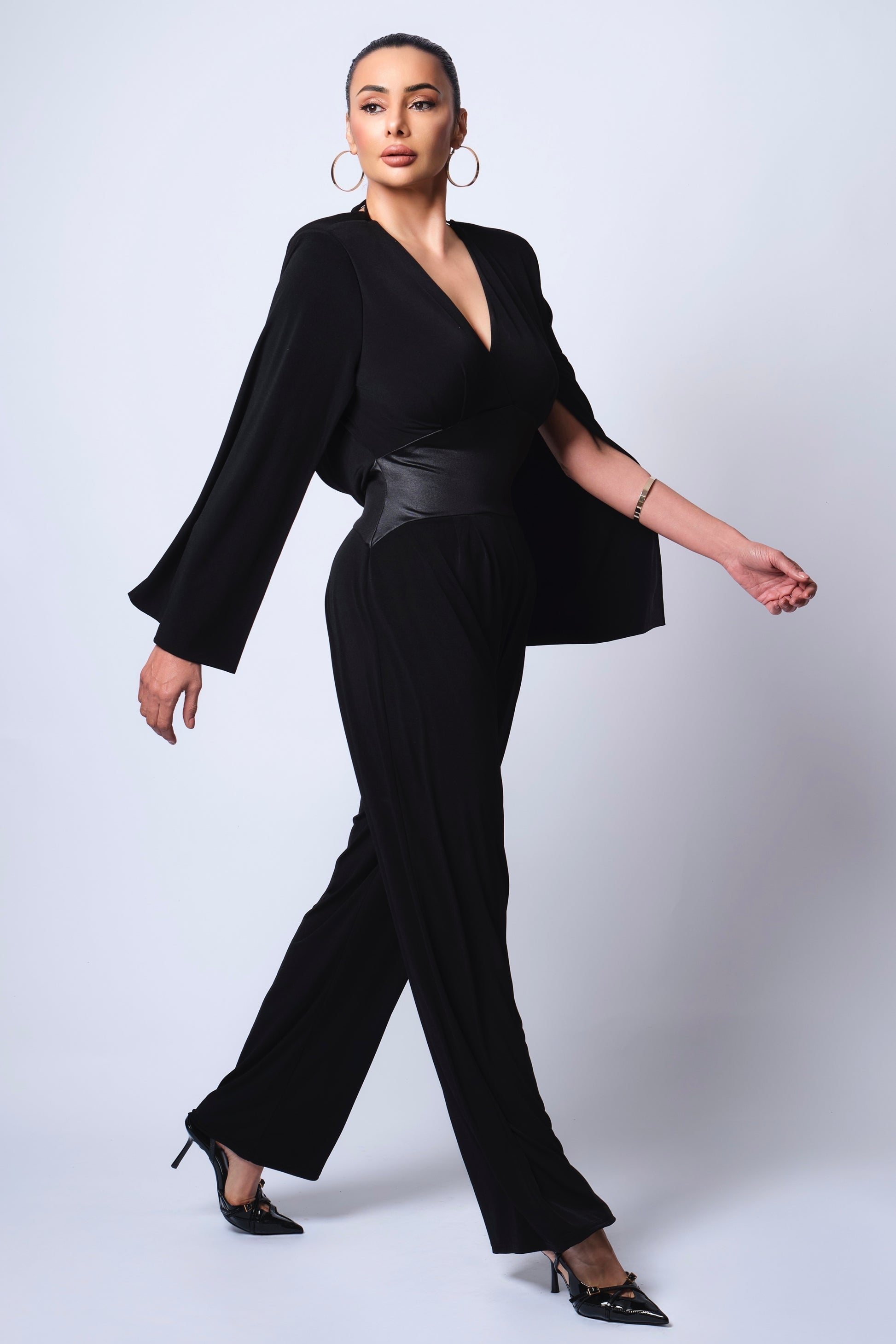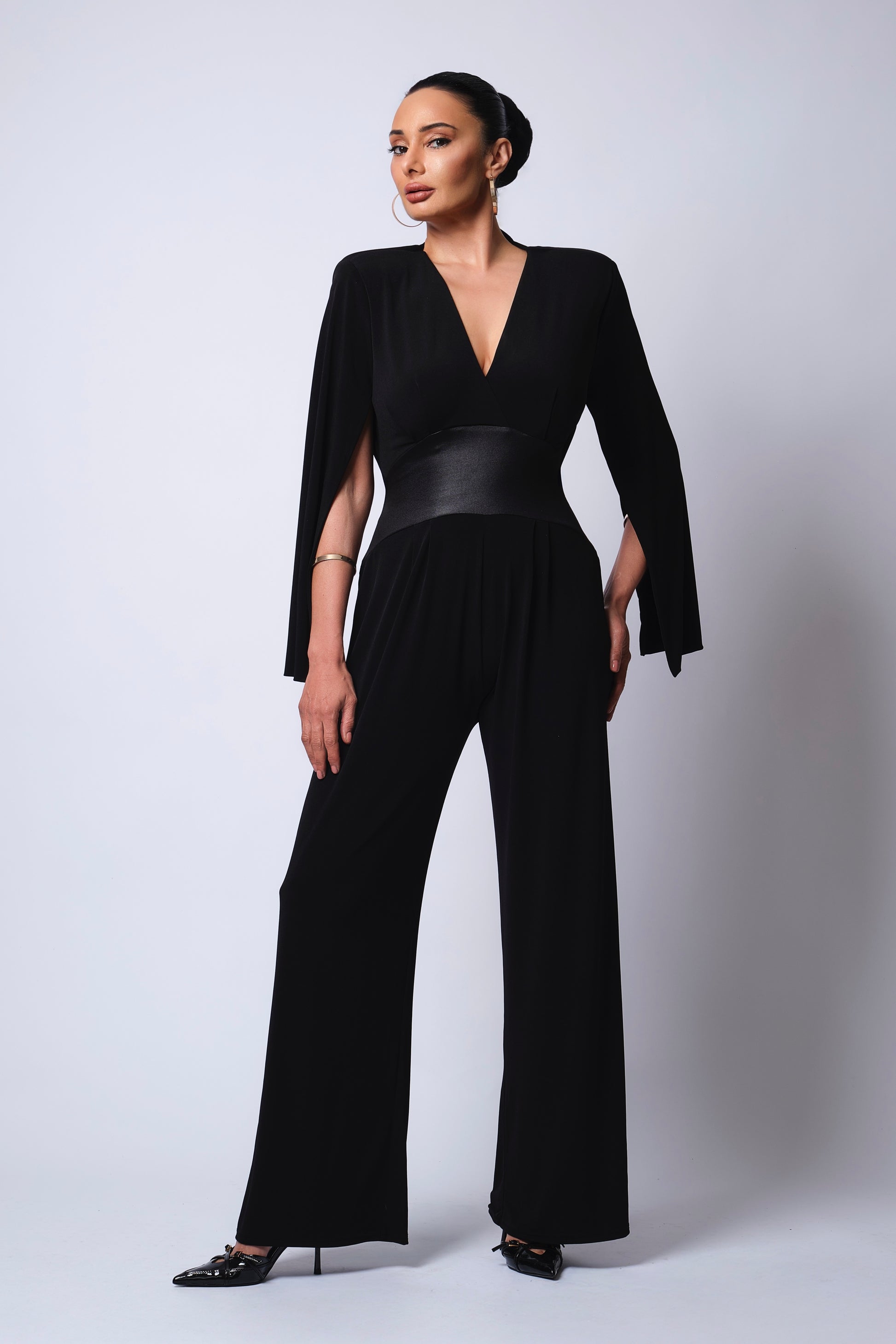 Created in a luxurious jersey, this wide leg jumpsuit combines structure with comfort, giving you a cinched silhouette and timeless elegance. With its sharp tailoring, bra-friendly signature detailing and dramatic cape sleeves, IMANI gives you the perfect balance of power and sophistication.